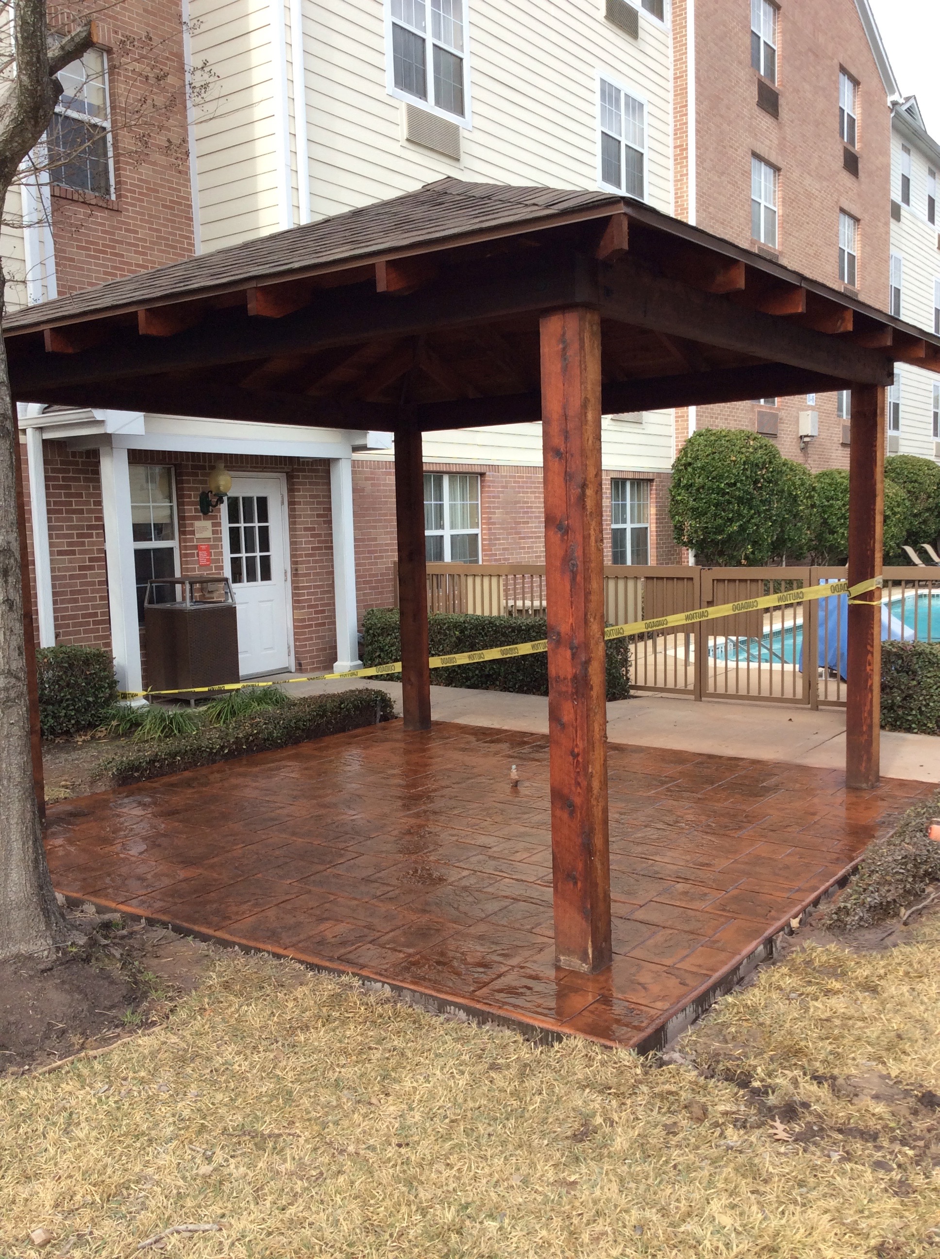 | THIS PROJECT WAS DONE FOR MARRIOTT SUITES ON LOUETTA. WE ADDITIONALLY RESURFACED THEIR POOL DECK AND ADDED A TOP STAMPED TIER TO THEIR POOL AREA |